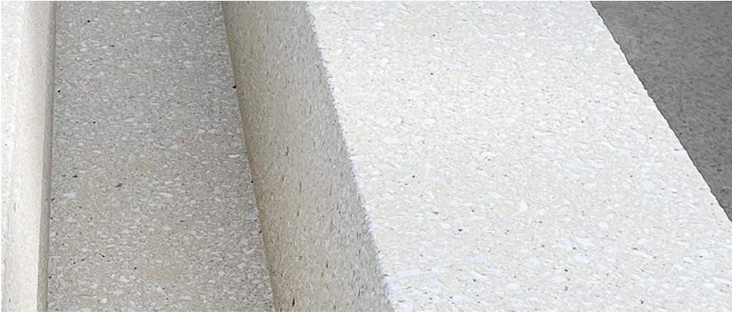 工場であらかじめ成形・硬化させたコンクリート製品のことをPC(プレキャストコンクリート)と呼びます。多様な仕上げの選択肢があり、タイルや石などの打ち込みのほか、塗装下地に利用したり、コンクリート自体に顔料で着色した後で、表面にサンドブラストや研き出しなどの仕上げ加工を施すことができます。